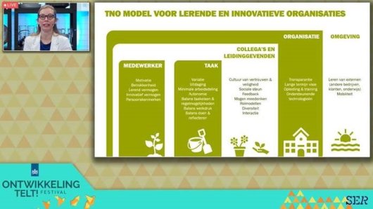 Donderdag 22 april werd tijdens het SER-festival ‘Ontwikkeling Telt!’ een presentatie gegeven over het model voor Lerende en Innovatie Organisaties door Linda Koopmans, onderzoeker bij TNO.